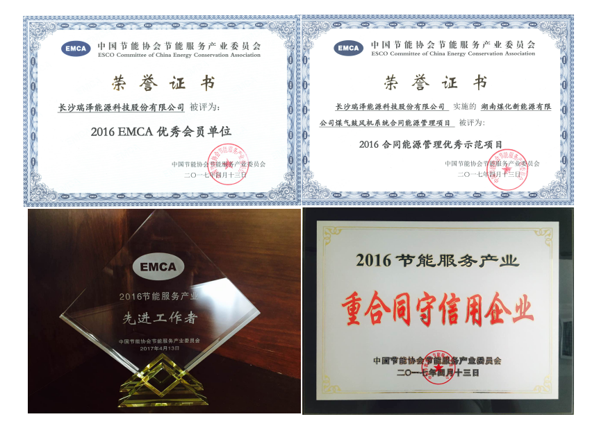 會上,瑞澤能源榮獲“2016年節(jié)能服務產(chǎn)業(yè)重合同守信用企業(yè)”“EMCA優(yōu)秀會員單位”和“2016合同能源管理優(yōu)秀示范項目”獎項,公司總經(jīng)理榮獲“2016年節(jié)能服務產(chǎn)業(yè)先進工作者稱號”。